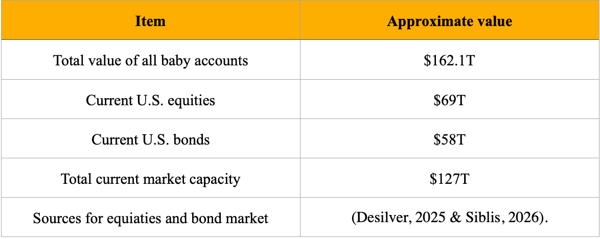 In other words, the scheme would require more financial assets than the country currently has—even before you consider wealth inequality pushing it higher. The taxpayer “cost” looked tiny (around $36B a year), but the market‑capacity cost was impossible.